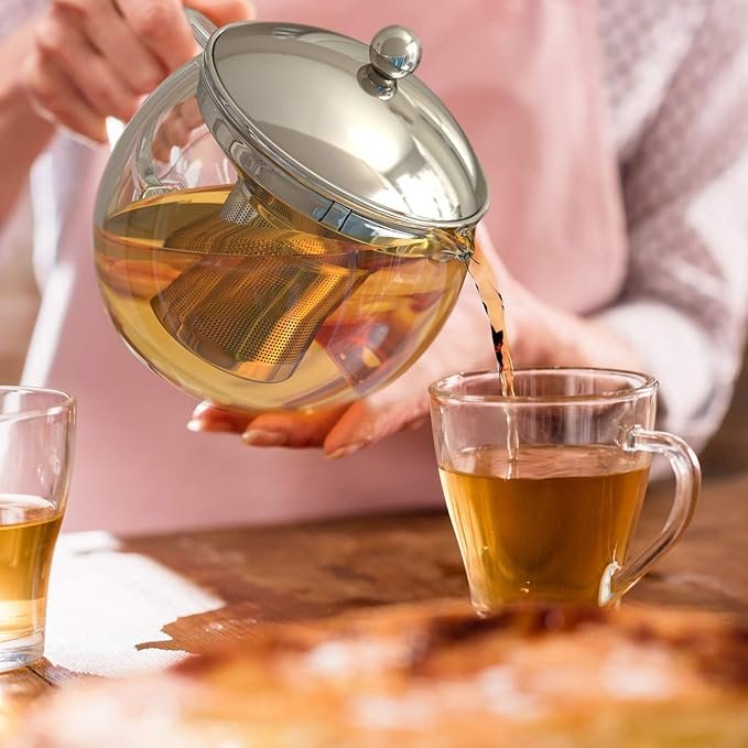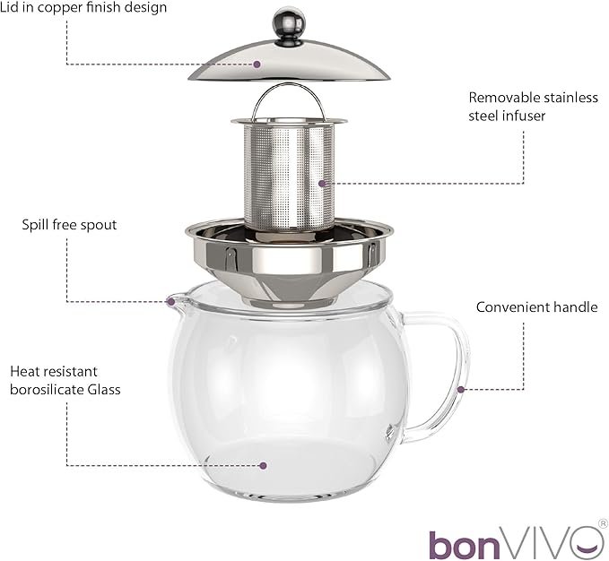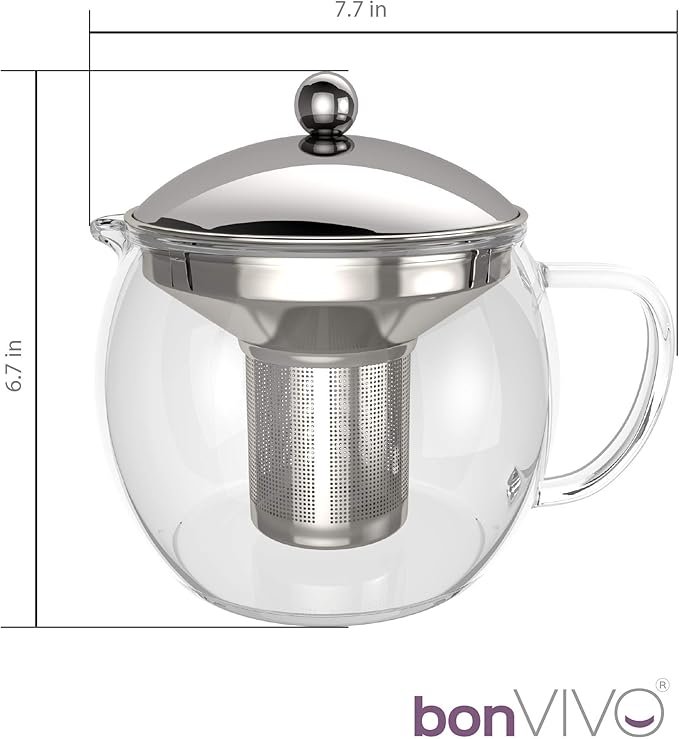 Overall, the Bon VIVO Glass Teapot with Infuser is a great choice for anyone who loves to enjoy a cup of tea. Its heat-resistant glass material, removable infuser, and silver lid make it a convenient and practical choice for brewing loose leaf tea. Whether you are hosting a tea party or just enjoying a cup of tea at home, this teapot is sure to impress.