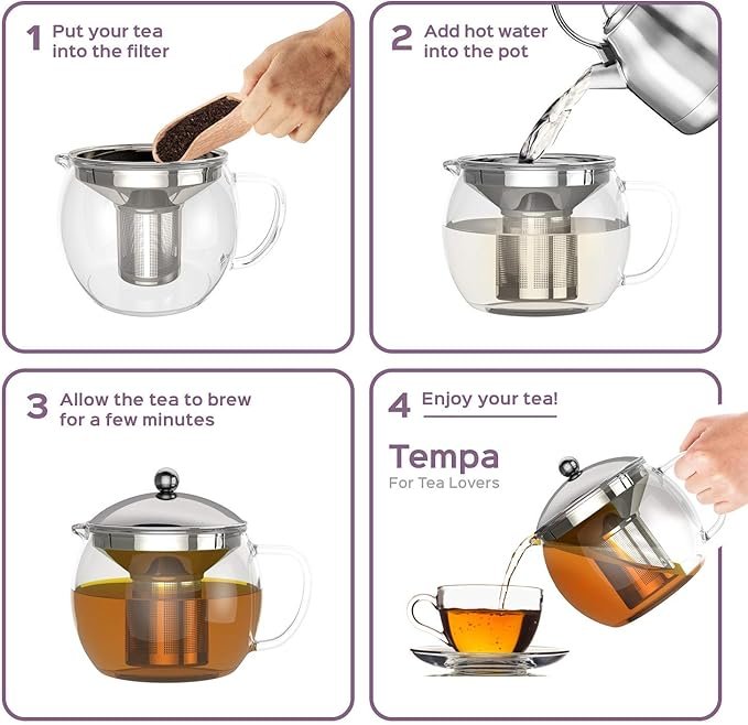 The teapot is made of heat-resistant glass, which means it can be used on a stove top or in a microwave without the risk of cracking or breaking. The infuser is made of stainless steel, which is durable and easy to clean. It also does not react with the tea, ensuring that your tea remains fresh and flavorful.